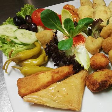Großer griechischer Vorspeisenteller15,90€eine Kreation aus verschiedenen vegetarischen Vorspeisen